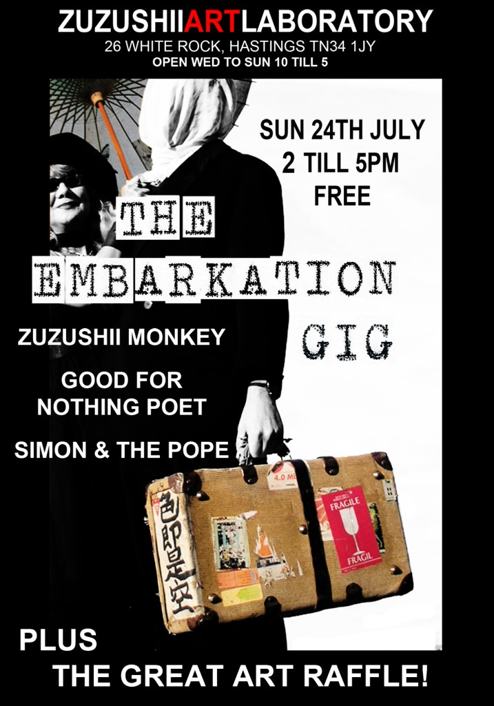 As those in the know will know, ZUZUSHII ART LABORATORY have left the building, are in transition, in the void between there and the next, hunting for the ART BARGE. We have not got there yet, but have faith, we travel light and the light will show us the way, and in the meantime – have a gander at zuzushiiart – that‘s our instagram thing. Many thanks to those who helped to get us moving, in another new direction, the boxes are packed, the future on tap.